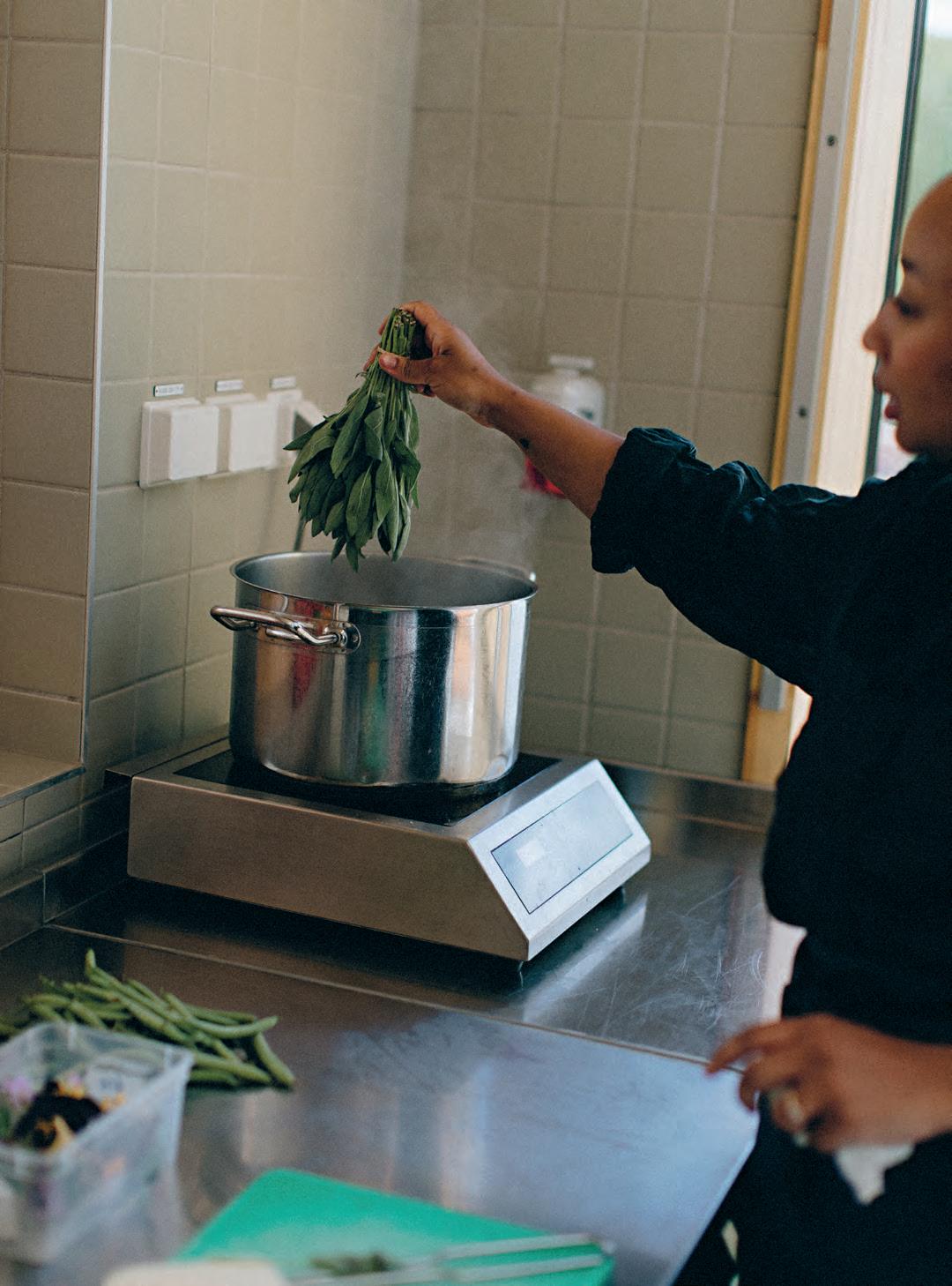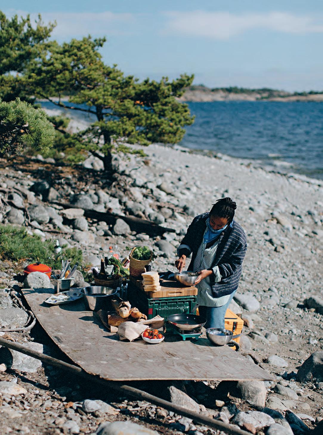 Det känns som att jag greppat matens betydelse, från ren och skär överlevnad till att kunna utnyttja mycket av den kunskap vi samlat på oss under historien för att förändra och smaksätta råvarorna. Hela vägen till något som kan sägas vara en konstform och ett sätt att mötas. Mamma är från Gambia, hon flyttade till Sverige när hon var runt 30 år och jag föddes strax därefter. Jag minns hur vi satt hemma runt ett fat med en riktigt stor ångande fisk. Vi satt på samma sätt som man gör i Gambia, där man inte har varsin tallrik utan alla sitter runt det stora fatet och äter tillsammans. Det fanns en tydlig hierarki, det var självklart att mamma började och så fick man sina fiskbitar efterhand. Det är intimt att äta så, man kommer varandra extremt nära. Jag tror att det är en känsla som jag fortfarande bär med mig, som jag vill återskapa. Måltiden ska vara en helhet som skapar trygghet, gemenskap och minnen.