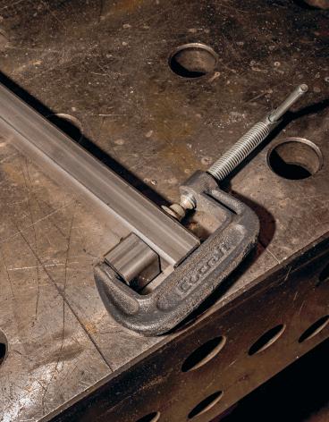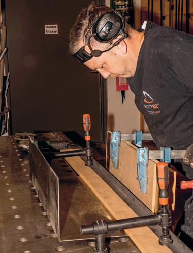 5. Se till att ett bleck ryms mellan fötterna.Centrera underarmen medan överarmen ska vara något förskjuten för att ge plats åt motorn.