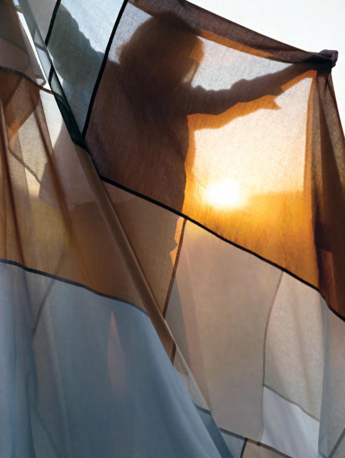 En nära vän berättade om pojagi – en koreansk lappteknik där mindre tygbitar och överblivna textilier sätts samman till större verk. Det unika med just den här tekniken är att de färdiga verkens fram- och baksidor är fina att betrakta oavsett vilken sida du väljer att vända fram. Och ännu finare blir det när de hänger i en ljusöppning där solens strålar sipprar fram genom de tunna, skira tygerna. Jag blev nyfiken på pojagi och matade in stuv efter stuv i symaskinen. Det blev snett och vint. Knöligt och fult. Men de olika materialen lärde mig något nytt varje dag. Plötsligt hade jag sytt något i den här nyfunna lapptekniken som jag faktiskt var nöjd med. Jag minns fortfarande den tillfredsställande känslan när min första pojagigardin kom upp i fönstret – det ligger något fint i att göra det hemtrevligt och ombonat med saker du själv skapat. Framförallt känns det hållbart. Både för textilindustrin och mitt orimliga samlande – som där och då plötsligt fick ett helt nytt syfte.