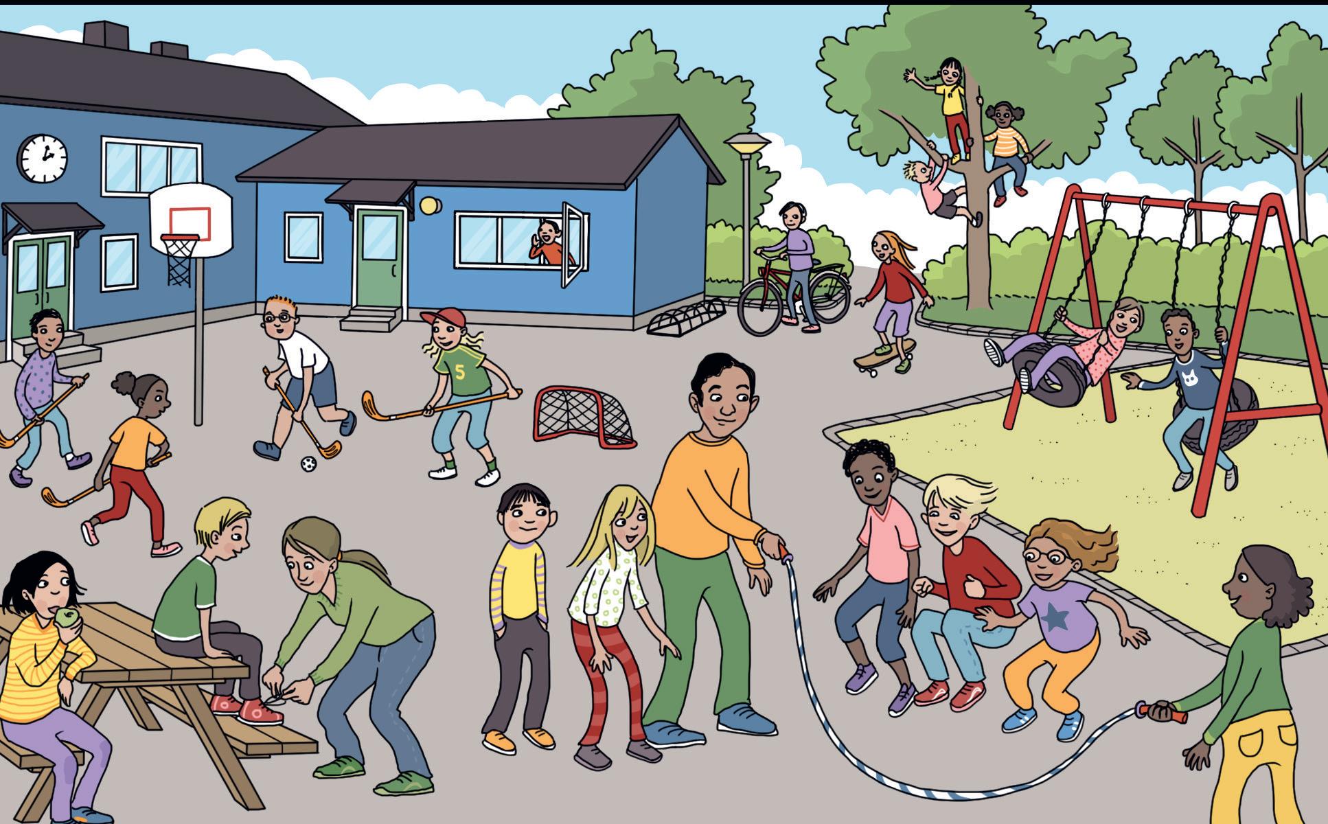 Barnen rasten. på gungade hoppade Fröken hopprep. illa gjorde benet. Edvard sig på
