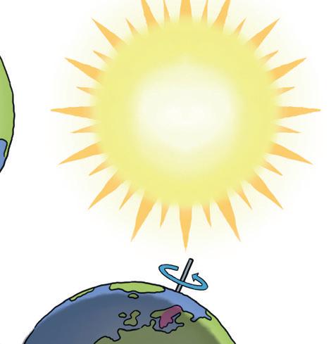Solen verkar röra sig över himlen under dagen, då den stiger upp på morgonen och går ner på kvällen. Men egentligen är det jorden som roterar runt sin egen axel, jordaxeln. Eftersom vi befinner oss på jorden märker vi inte av rotationen, utan i stället ser solen ut att röra sig. Det tar 24 timmar för jorden att rotera runt sin axel. Vi kallar det ett dygn.