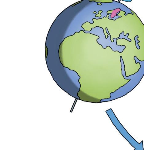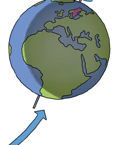 Finland ligger öster om Sverige och i en annan tidszon. Där går solen upp tidigare än i Sverige. När klockan är 12.00 i Sverige är den samtidigt 13.00 i Finland. Om du reser österut måste du alltså ställa fram klockan. De flesta klockor och mobiler ställer om tiden automatiskt. På Island, som ligger väster om Sverige, är klockan i stället 11.00 när den är 12.00 i Sverige. Att klockan visar olika mycket i olika tidszoner beror på att jorden roterar runt sin axel.