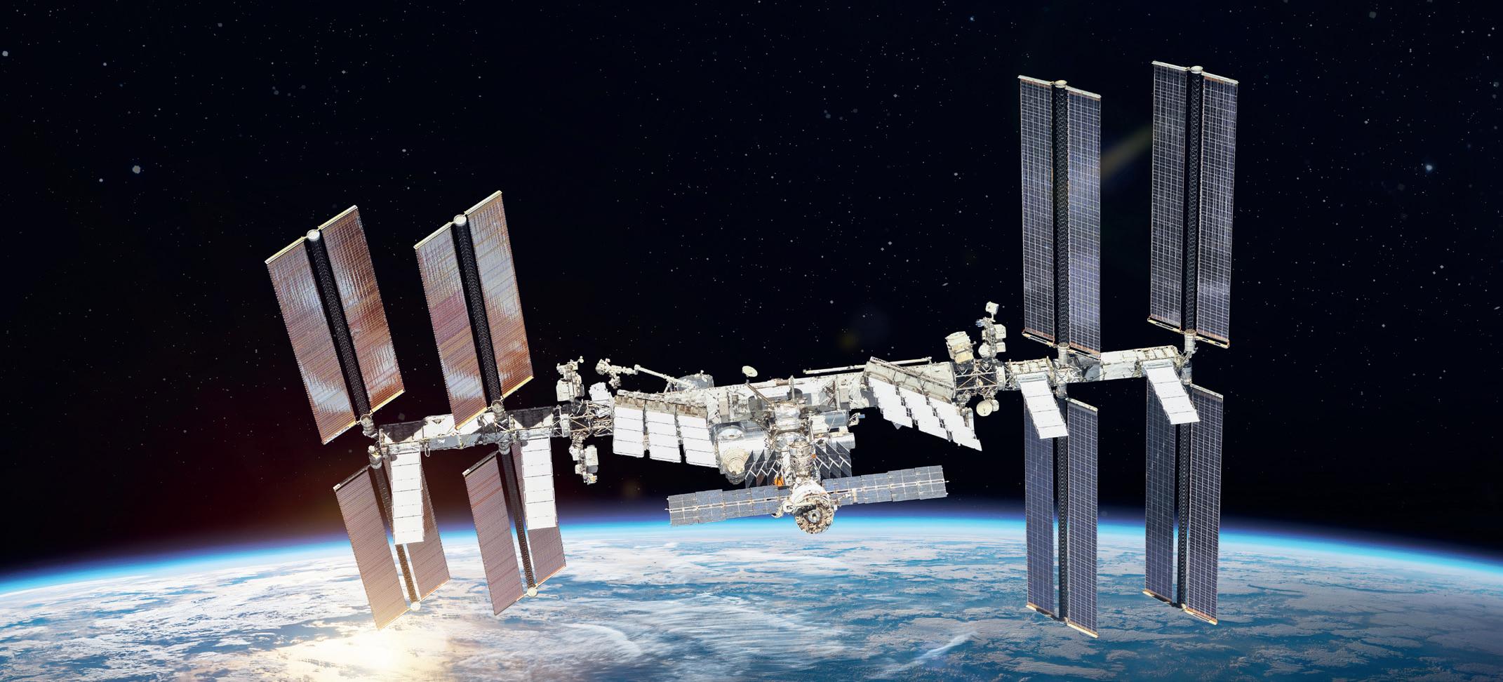ISS står för International Space Station. Det tar 90 minuter för rymdstationen att röra sig ett varv runt jorden. På ISS bedrivs bland annat forskning som är viktig för att vi en dag ska kunna resa till Mars.