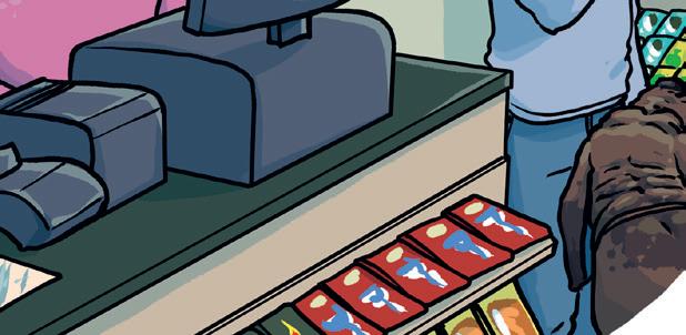 Bredvid kassaapparaten fi nns ett inramat diplom som gratulerar Gun och Åke till att ha sålt vinsten. Fortfarande är det ingen som vet vem som vann alla pengarna.