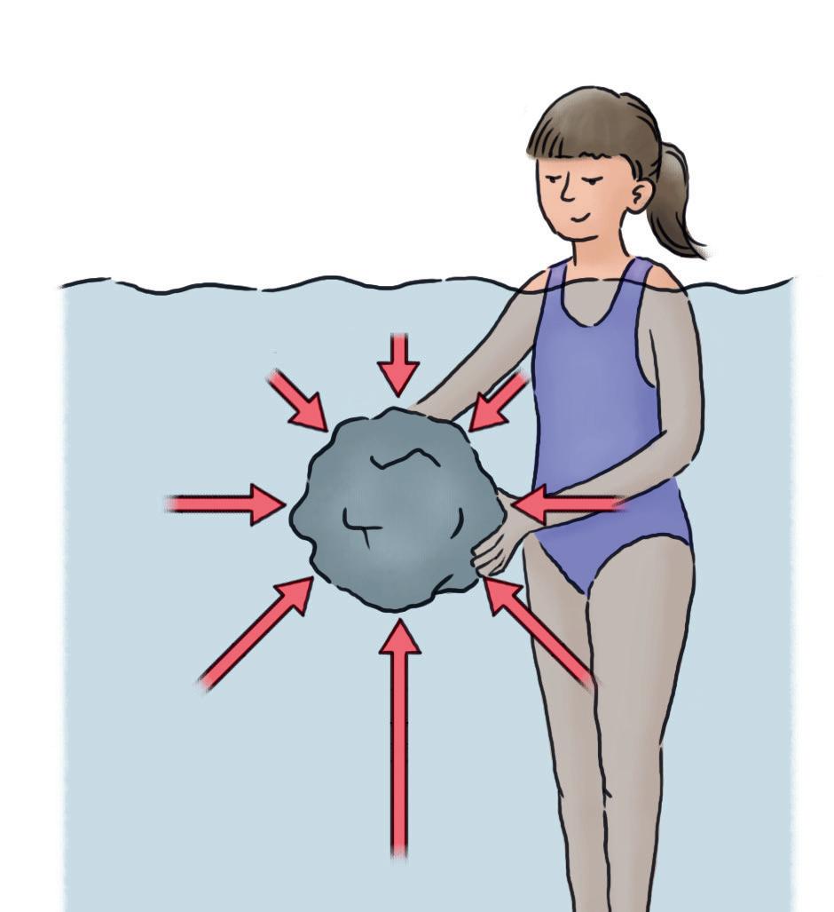 Om du försöker lyfta ett föremål i vatten känns det lättare än om du försöker lyfta det på land. Man brukar säga att vatten har en lyftkraft. Som du tidigare har läst gör vattnet ovanför så att trycket blir större ju längre ner under vattenytan man kommer. Det är skillnad i tryck beroende på hur djupt ner man är. Det är den här tryckskillnaden som ger lyftkraft till ett föremål under vattnet.