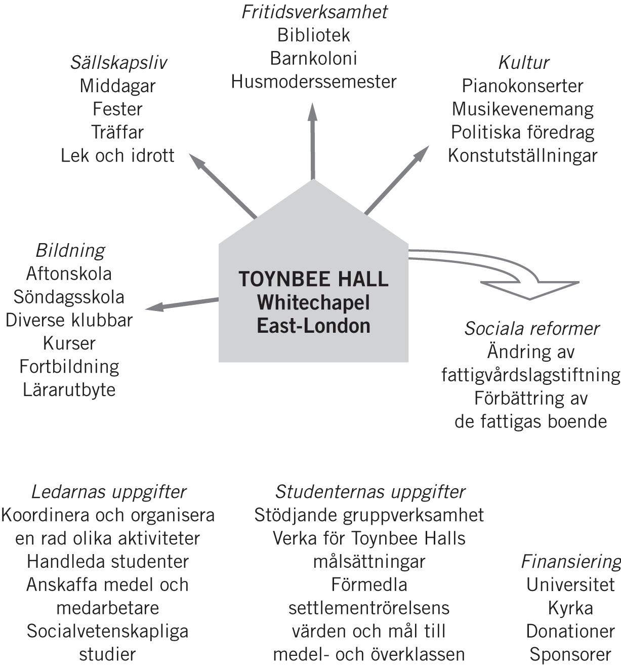 1895 och som kan ses som grundare av den så kallade settlementrörelsen. De som engagerade sig i denna ville verka för sociala reformer och slog sig ned i settlements, bosättningar, i städernas fattigkvarter för att undersöka problemen på plats och bedriva seminarieverksamhet. Tanken var att undersökningsresultaten skulle kunna användas av invånarna i sina krav på myndigheter, arbetsgivare med flera.