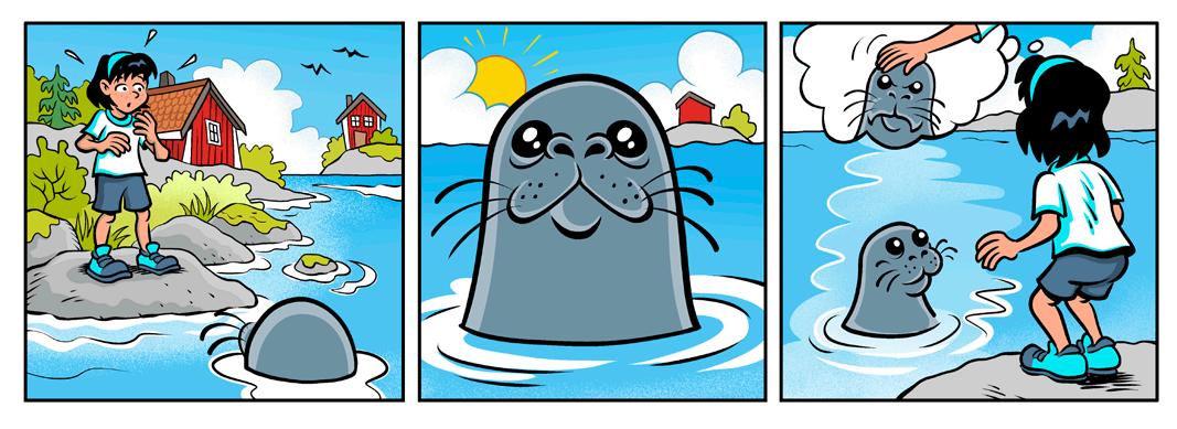 Cleo ser en säl. Sälen är stor. Är sälen sur?