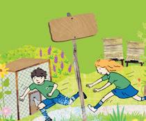 in the garden. run after the chickens. live in the worm farm. licks a worm. is the Green Corner.