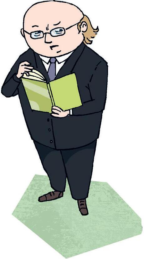 Mr. Bell is a teacher. He has a round head and not much hair. The top of his head is pink. Very pink.