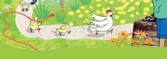 Mr Bell is a teacher. The chickens are out in the garden.