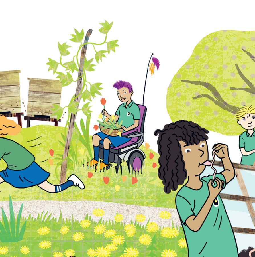 The children love visiting the school garden. There are chickens, flowers and a huge worm farm there.