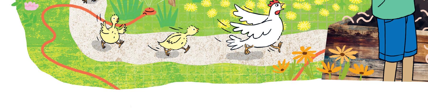 “Catch the chickens! We don’t want them to eat the worms in our worm farm.”