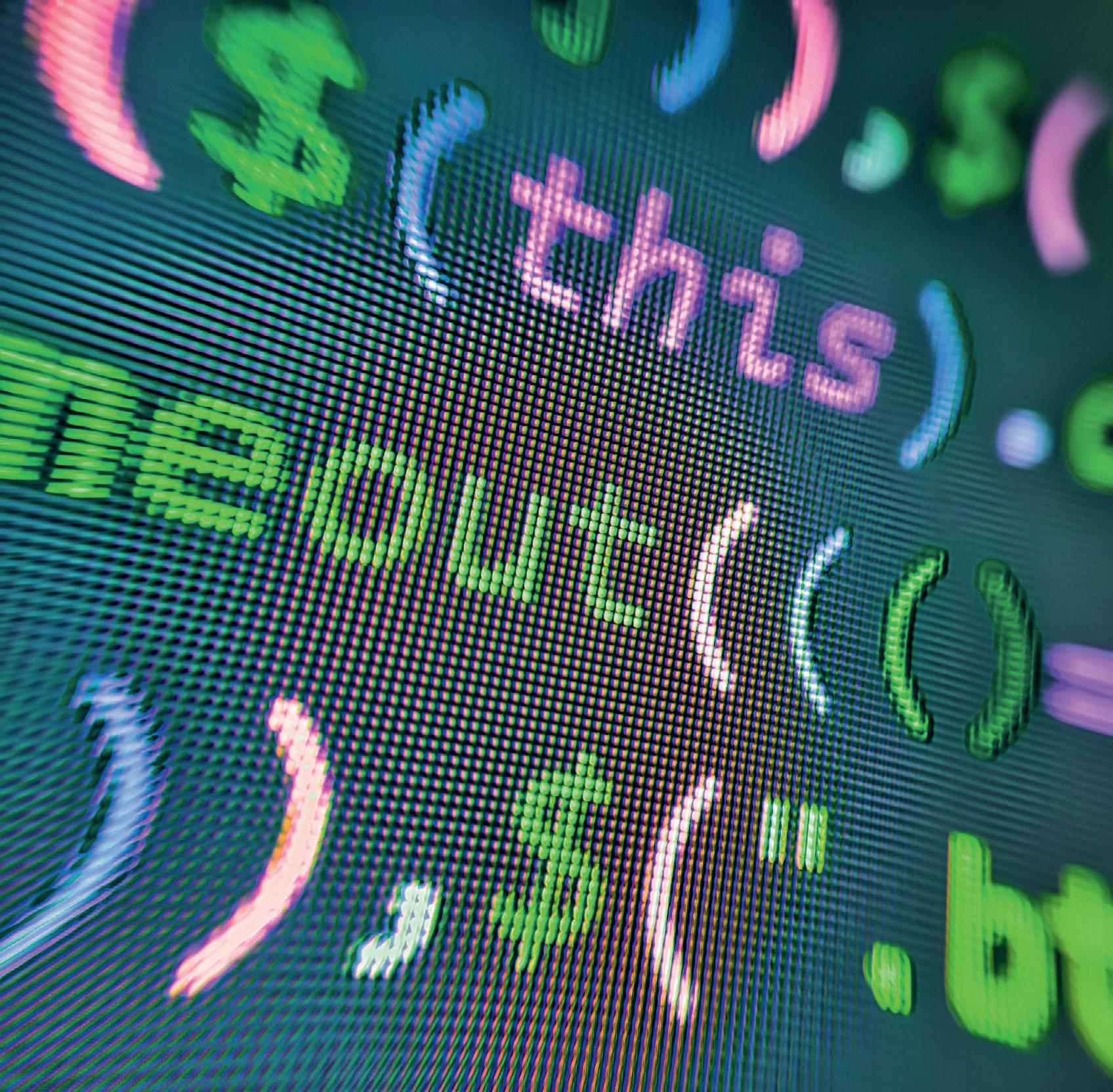 Bilden visar ett par som leker en gissningslek och en person som programmerar ett gissningsspel. Fråga eleverna vad som skiljer människors språk från språket vi använder i datorer. Låt dem fundera enskilt först och skriva ned sina förslag, för att