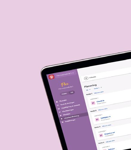 Flex matematik årskurs 5 består av lektionsbok med elevwebb och lärarhandledning med lärarwebb.