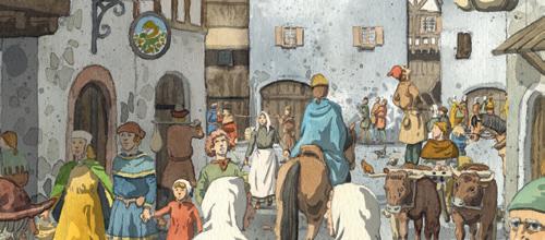 trots att vi är i Sverige. Föreställ dig att du går genom skogen. Vinden mellan träden luktar lite brandrök. Snart hör du hammarslag, en hund som skäller och röster. Du är på väg in en by. Nu ser du var hammarslagen kommer ifrån. Alla byn verkar hålla på med något hantverk: laga en grind, göra en plog, baka bröd. Någon står vid en eld och bankar på järn för att få det till en yxa eller kanske ett