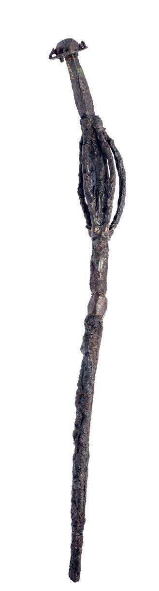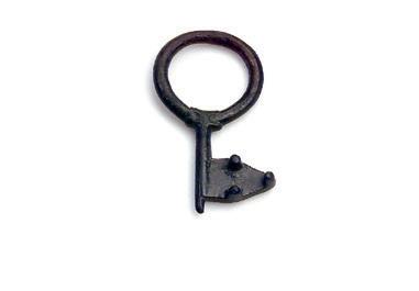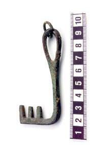 cm lång. Den högra är en kroknyckel av brons, hittad i Simunde nära Bara ödekyrka på Gotland. Den är ungefär 8 cm lång. Båda nycklarna är daterade till vikingatiden. Nycklar hade en symbo lisk betydelse och visade vem som hade makt och ansvar i hushållet, till exempel över värdefulla förråd. De flesta gravar som man har hittat nycklar i har varit gravar som tillhörde kvinnor.