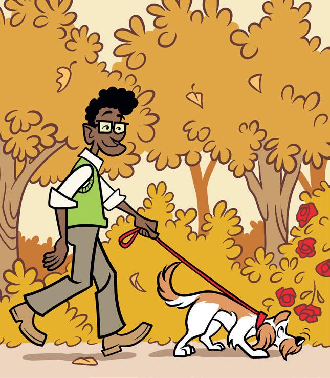Varje sida har en bild med tillhörande text. Titta på bilden tillsammans med eleven. Prata om vad som händer på bilden.