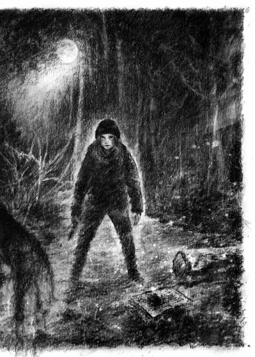 Ett föremål hade glidit ut ur hennes jackficka och låg nu i snöslasket: Bröderna Grimms sagor. Från grillplatsens andra sida hördes fortfarande Felix ilskna vrål och ljudet av skramlande järn.