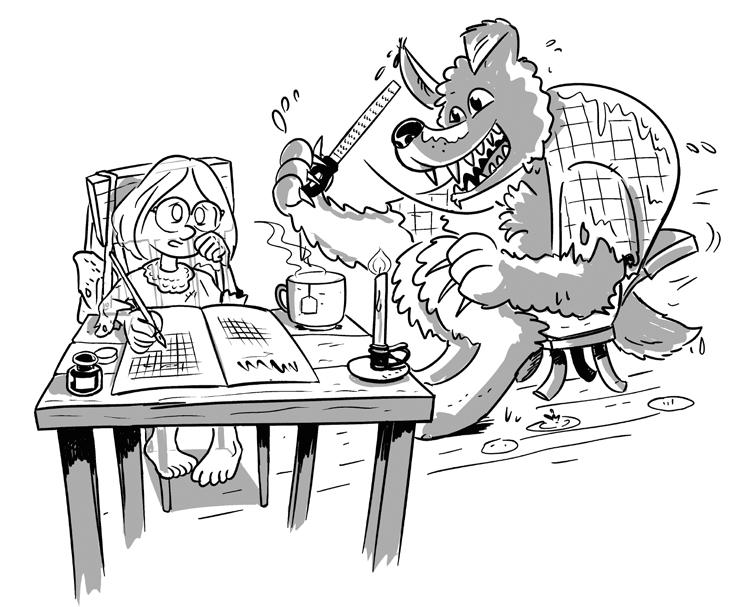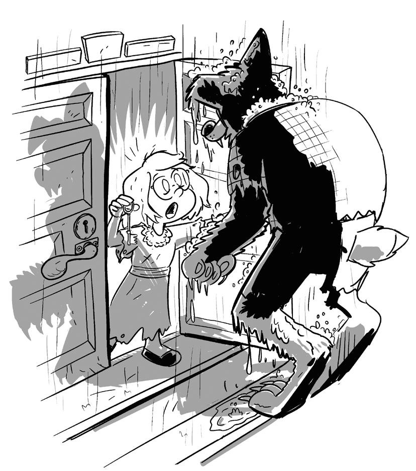 Men till hennes förvåning var det Varg som stod där, med fuktig päls och slokande öron. Han såg ovanligt snäll ut för att vara en varulv, och det var därför han hade fått namnet Varg. Han inte bara såg ovanligt snäll ut, han var det också. Hans äldre bröder hade fått namn som var mer typiska för varulvar – Slaktarn, Stryparn och Sprättarn. De var inte lika snälla.