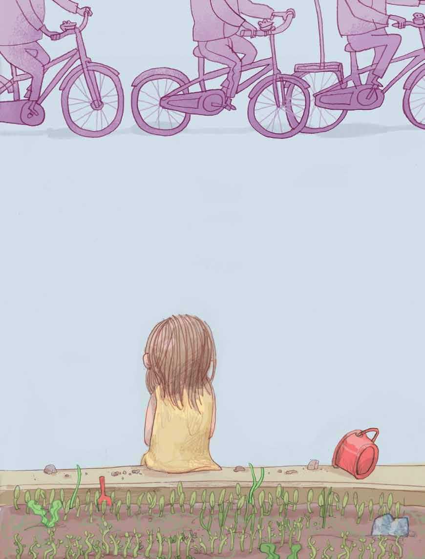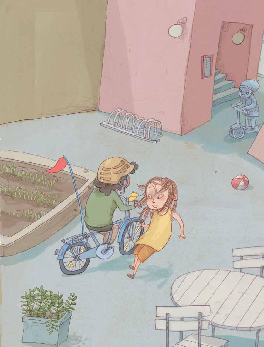 En dag kan precis alla barn på gården cykla. Till och med Nitan, och hon är ju mindre än Berit. – Kom du också! ropar Uffe.