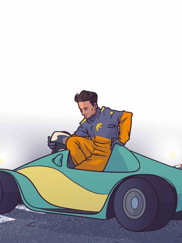 ljuset och Sandro sitter vid ratten och väntar, redo i hjälm och overall. Han längtar efter att trycka gasen i botten och höra den kraftiga motorn vråla.