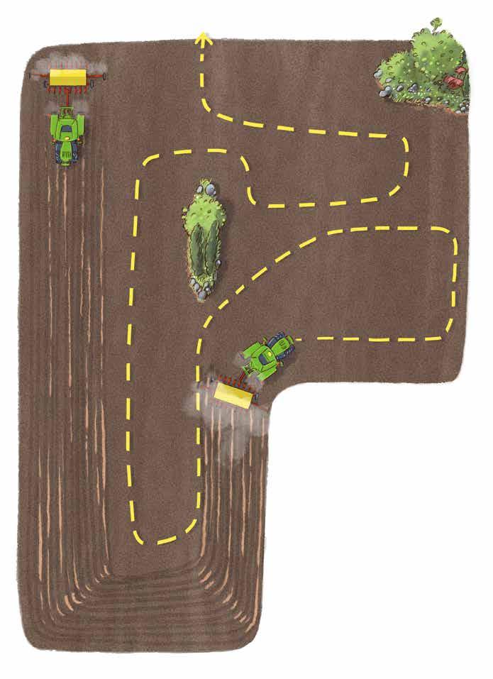 Alla moderna traktorer har gps. Den står i förbindelse med flera satelliter och berättar var man är. Halvan ställer in hur traktorn ska köra över fältet. Sedan sköter gps:en allt. Han behöver inte ens gasa. Gps:en kan även vända traktorn, men just det brukar han göra själv. Det blir så tråkigt annars.