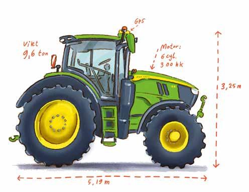 Hans viktigaste fordon är traktorn, en grön John Deere 6R 250. Den väger 9,6 ton, alltså lika mycket som sex personbilar.