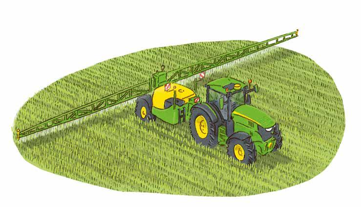 Och när stråna börjat komma upp sprutar Halvan med växtskyddsmedel mot ogräset.