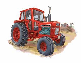 Halvan har också en gammal traktor, en röd Volvo BM T 650 från 1981. Den använder han när han gör mindre jobb på gården. Förr var alla traktorer bakhjulsdrivna, med stora hjul bak och små fram. De små framhjulen gjorde det lätt att svänga och vända. Den tunga motorn fram vägdes upp av de tunga däcken bak.