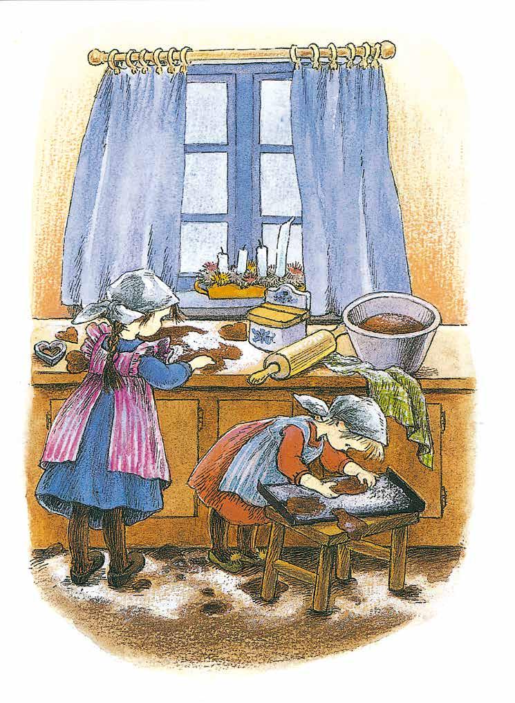 med en hel del. De bakar pepparkakor och kokar knäck och gör små goda grisar av marsipan och klipper silkepapper till fästmansstången i köksspisen. Varje dag händer det ovanliga saker, och det känns mer och mer som jul! Över hela Junibacken ligger det ljuvligaste os av pepparkakor och knäck och klenäter.