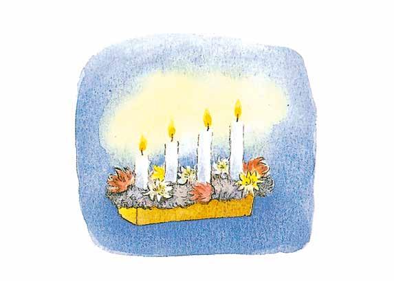 Mamma gör korv och saltar skinka och brygger enbärsdricka och stöper ljus.