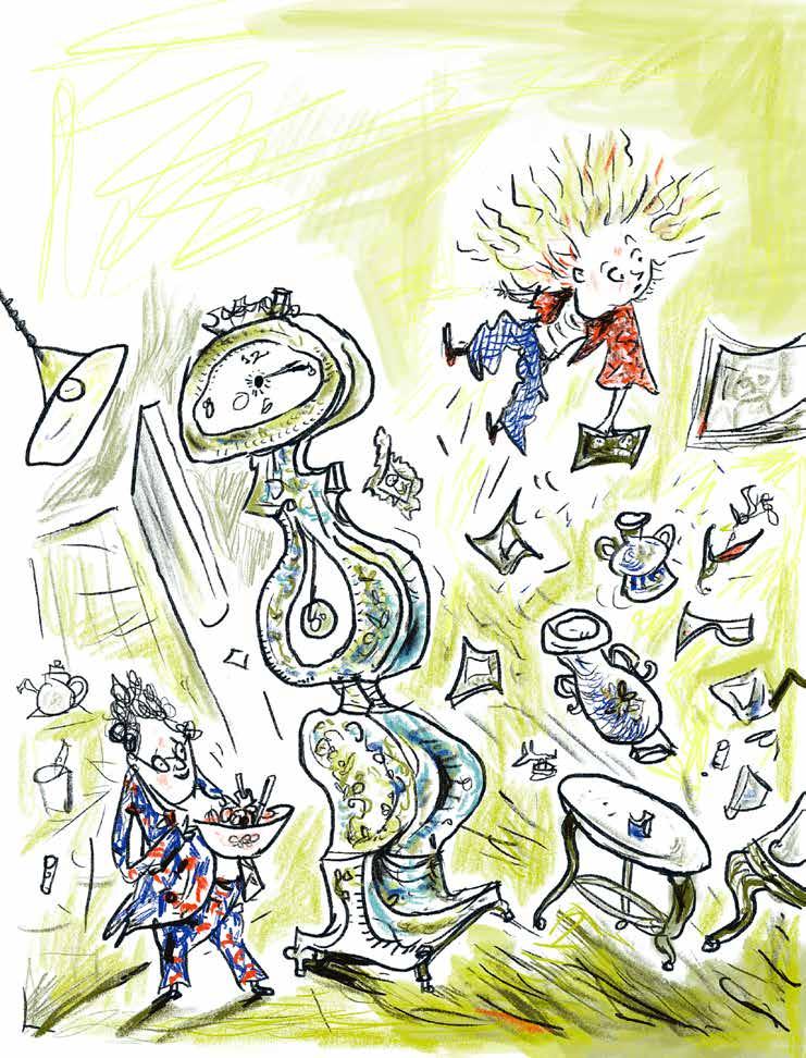 Det är tråkigt hos mormor. Det finns inget att göra och ingen att leka med. Möblerna är gamla och hyllorna är fulla av prydnadssaker. Det är så tyst att man hör moraklockan ticka.
