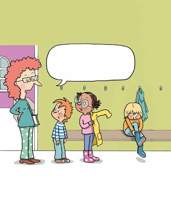 Alla i klassen går ut i korridoren och tar på sig regnkläder och stövlar.