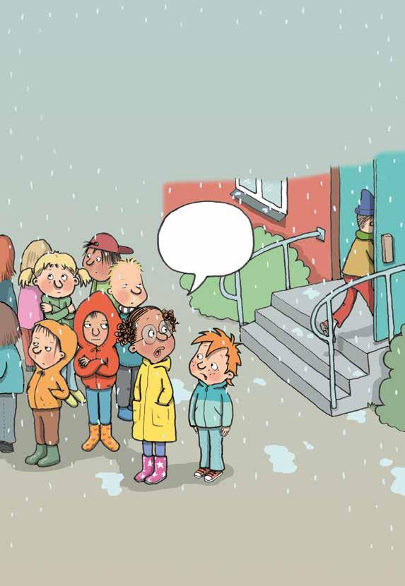 Hela klassen står och fryser i regnet på skolgården.