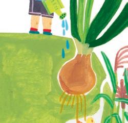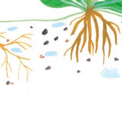 När ett frö planteras i jord kommer det börja gro och skjuta ut små rötter. Rötterna håller plantan på plats i jorden och gör att den kan suga åt sig vatten.