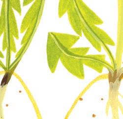 Sedan kommer små blad att sticka upp ur jorden ovanpå en tunn stjälk. Nu kan växtplantan växa så högt den behöver för att nå solljuset.