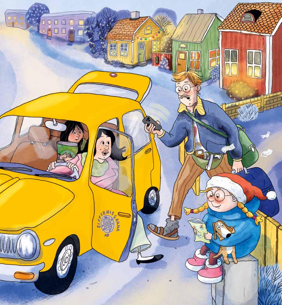 Pappa suckade och skyndade bort till bilen. Mamma ryckte loss ett stort tomteklistermärke med texten ”Det är jag bakom skägget”. Pappa ryggade tillbaka när han såg det. Men syrran skrattade.