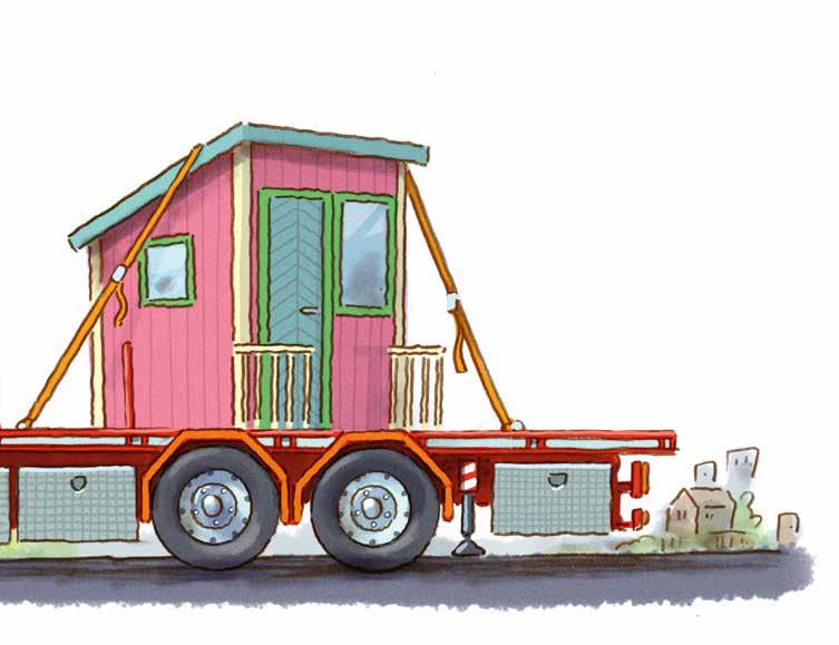 Kranlastbilen används också om man beställt en container eller köpt ett mindre hus – exempelvis en lekstuga, som ska stå på tomten.