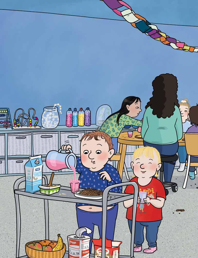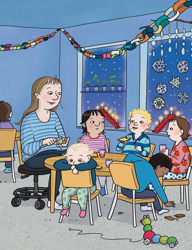 – Jag ska hem jättesent idag, säger Sixten när vi äter mellis. Han säger att det är för att hans mamma ska gå på stan och köpa julklappar efter jobbet.
