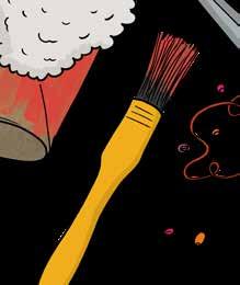 – B som i baka, säger hon och ställer en stor kastrull på bordet.