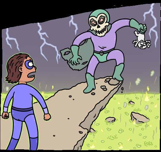 Indigo har jagat den förskräcklige superskurken Skullzor in en återvändsgränd.