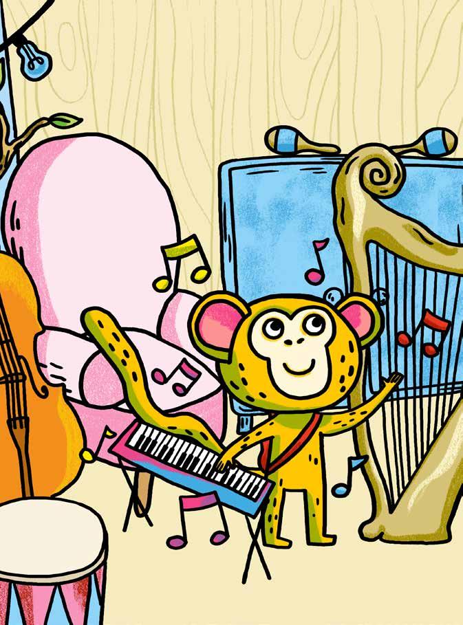 Idag vill apan spela på sin ukulele.
