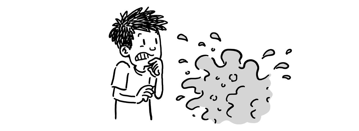 Vips, ett vulkanutbrott. Och det är exakt det som händer när du spyr. Min faster säger att ibland kommer magman långt nerifrån jordens inre, och ibland kommer den från berg som blir så hett att det smälter och sedan blandas med vatten.