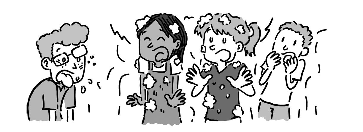vulkaner det som är värst. Och så är det med spyor också. Visst, några elever träffades av den första explosionen …