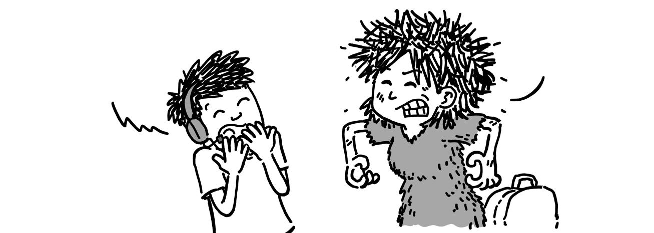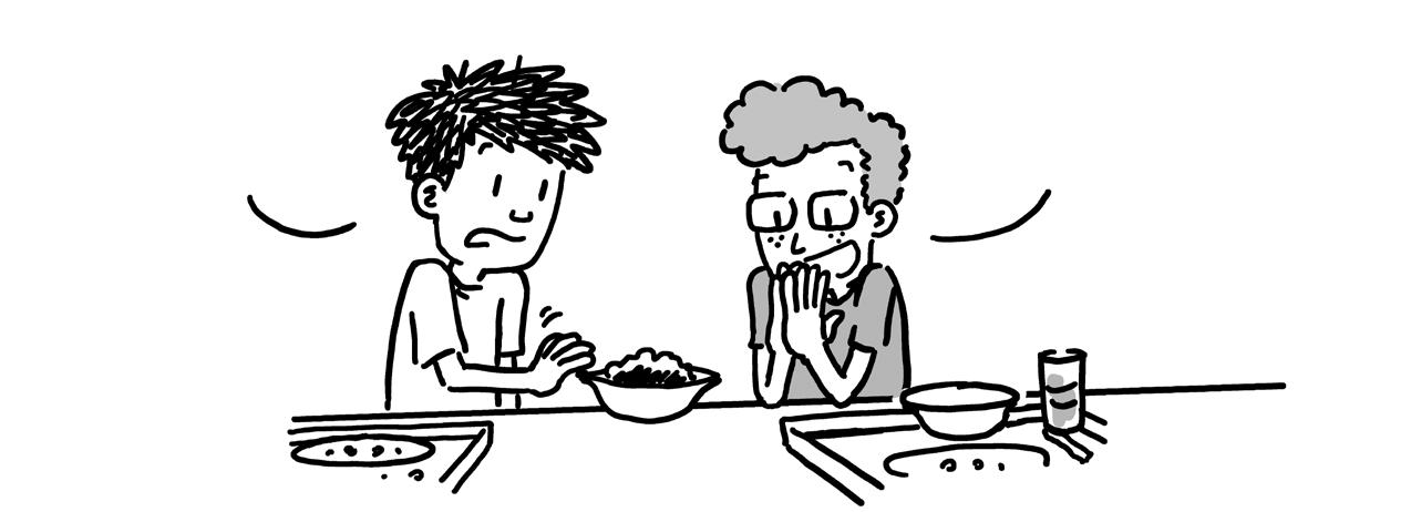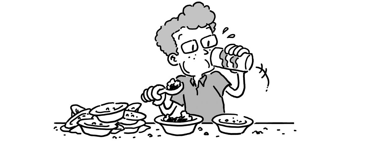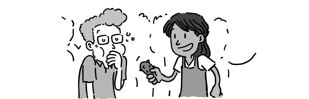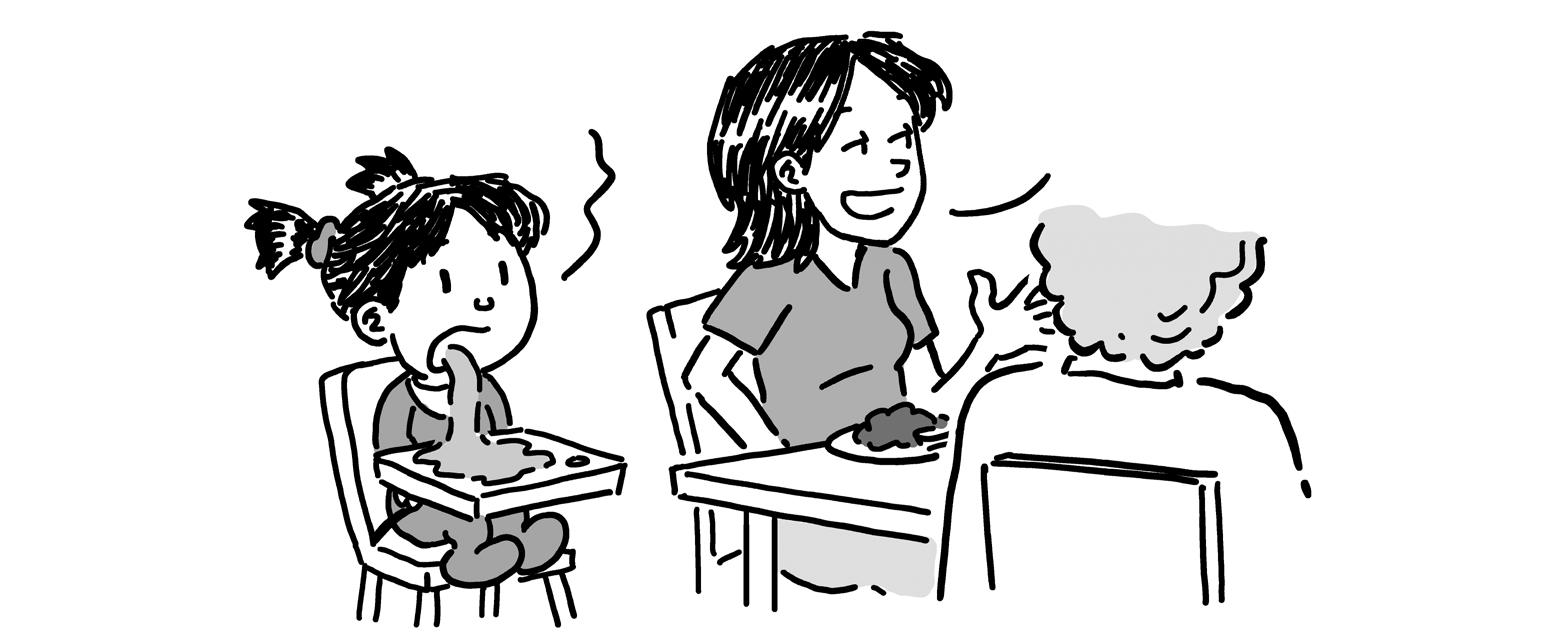 En gång kräktes min lillasyster när vi satt och åt middag på en restaurang, och det var ingen som märkte något förrän efterrätten serverades.