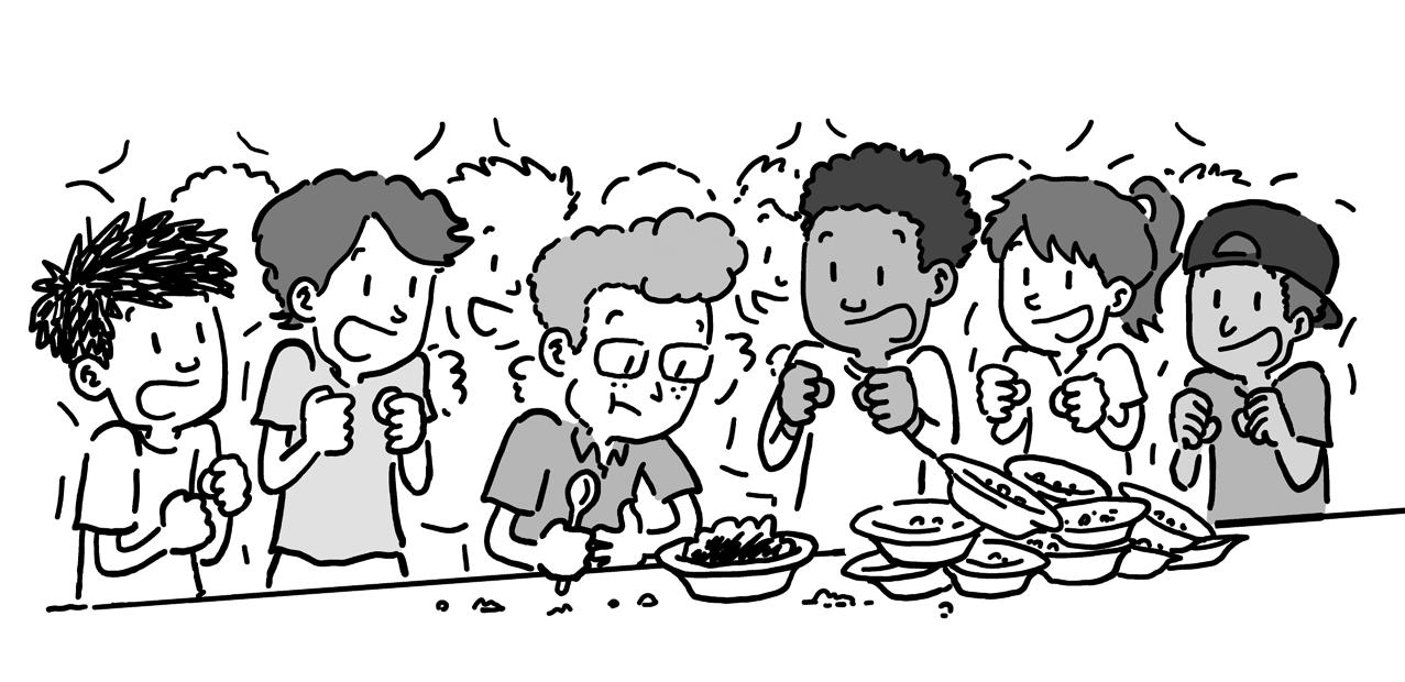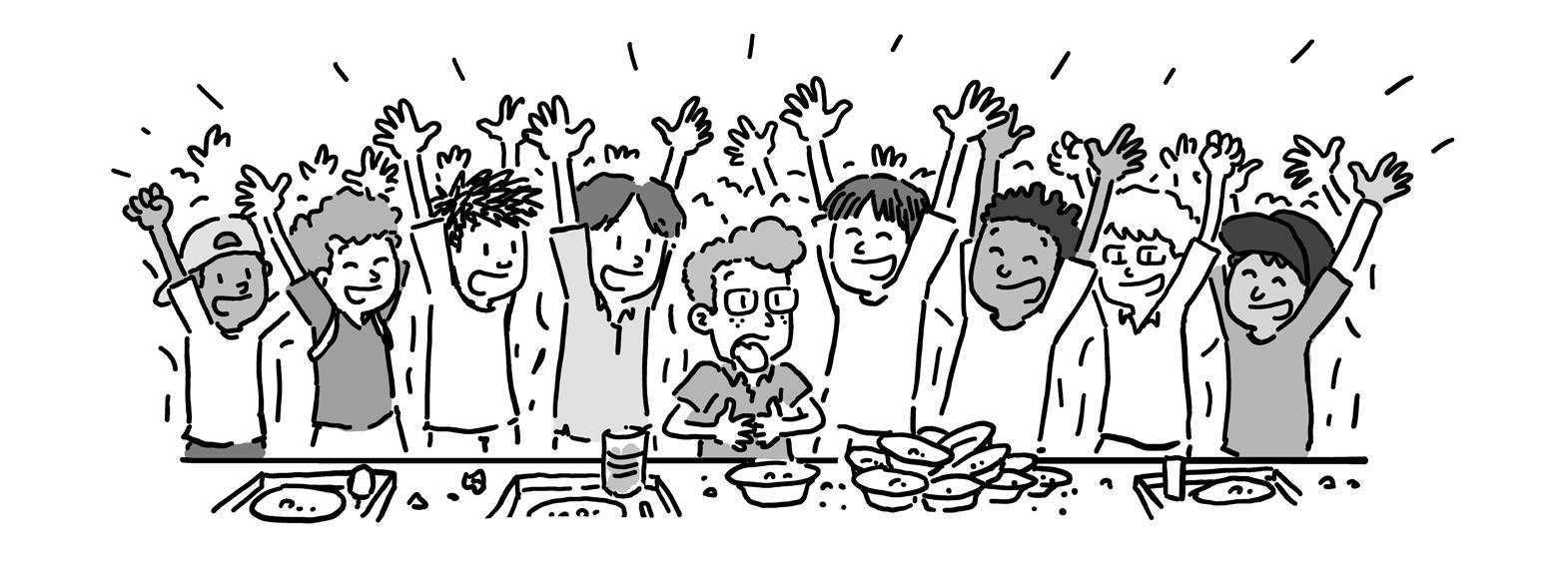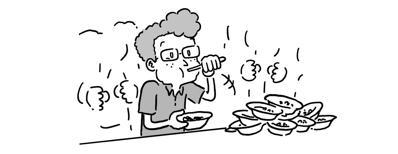 Då förstod alla andra hur mycket han tyckte om paj. Mila García gav honom sin och sedan fick han Yangsze Choys också. Det dröjde inte länge förrän Sven hade ett berg med tio körsbärspajer framför sig.