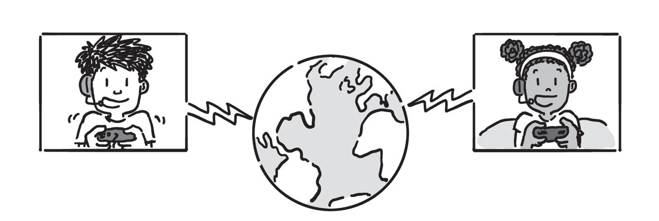 flyttade, en bok som du verkligen borde läsa om du inte redan har gjort det. Den innehåller ett gäng roliga serier som Evie ritade. Hennes pappa, professor Howard, studerar saker i rymden och han hjälpte mig att skriva boken. Nu bor de som sagt i Indien, och det är superlångt dit. Men vi lyckades ändå komma överens om en tid när vi kan spela tillsammans på nätet.