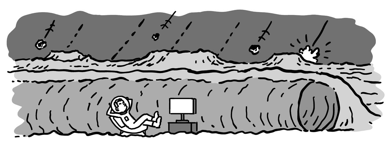 Min faster säger att det finns en massa lavarör på månen, alltså grottor som har bildats av flytande lava. Hon sa att om människor någonsin flyttar till månen skulle grottorna vara en bra plats att bo på, för de skyddar en mot stenar som slår ner och dödliga ljusstrålar från rymden.
