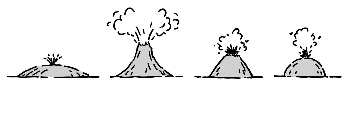 En del vulkaner spyr ur sig lava hela tiden medan andra börjar och slutar helt random. Och vissa vulkaner är EXPLOSIVA. Det är förmodligen den sortens vulkaner du tänker på när du tänker på vulkaner.