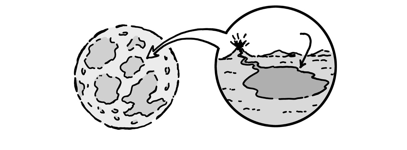 Det finns även vulkaner på månen. Du vet de där mörka fläckarna man ser när man tittar på månen? De består faktiskt av gammal lava.